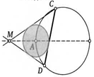 12. Отрезок ЛВ является диаметром окружности и пересекает ее хорду CD. Другая окружность имеет центр в точке А и касается хорды CD. К этой окружности из точек С и D провели касательные. Докажите, что они пересекаются на прямой ЛВ.