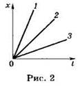 3. На рисунке 2 представлены графики движения трех тел. Какой из этих графиков соответствует движению с большей скоростью?