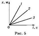 3. На рисунке 5 представлены три графика движения. Какой из этих графиков соответствует движению с меньшей скоростью?