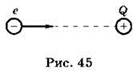 3. Как меняется кинетическая энергия электрона при его приближении к положительному заряду (рис. 45)?