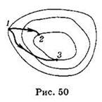 4. На рисунке 50 представлена картина эквипотенциальных поверхностей некоторого электростатического поля. По какой траектории нужно перемещать электрический заряд из точки 1, чтобы работа электрических сил поля была наименьшей?
