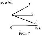 1. Определите, какой из графиков (рис. 7) соответствует равнозамедленному движению тела.