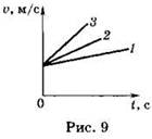 3. Определите, на каком из графиков (рис. 9) представлено движение тела, имеющего наименьшее ускорение.