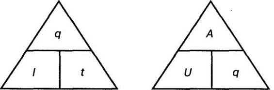 Схема для запоминания формул расчета силы тока и напряжения