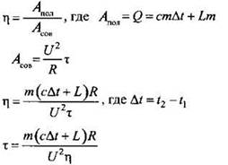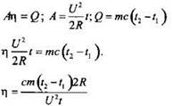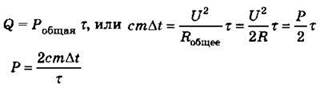 Закон сохранения энергии при нагревании воды при последовательном соединении двух спиралей: