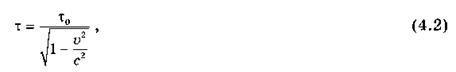 Таким образом, длительность события оказывается наименьшей в неподвижной системе отсчета. При этом, чем больше относительная скорость движения двух систем, тем больше разница в длительности событий, измеренных в этих системах. Из формул (4.1) и (4.2) следует также, что скорость света — это предельная скорость тела при любом движении, поскольку при v > с формулы теряют смысл.