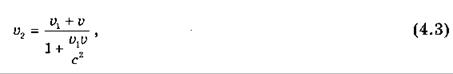 Из этой формулы видно, что луч света, распространяющийся со скоростью v1 = с в движущейся системе координат, будет распространяться с той же скоростью сив неподвижной системе координат.