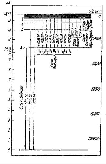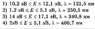 A8. В каких пределах должна лежать энергия электронов Е при бомбардировке ими атомов водорода, чтобы в спектре последнего (см. рисунок) появилась только одна линия излучения и какова длина волны этой линии?