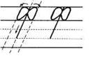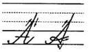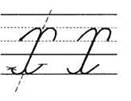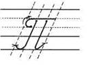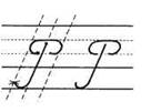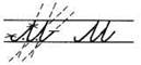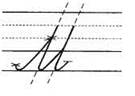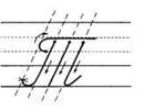 2. С середины рабочей строки по крючковой наклонной в дополнительную, в средней части секрет, развернулись, опустились, задержались, поднялись вверх и закрыли букву.
