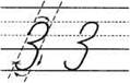 (Обратите внимание, что нижняя часть цифры 5 по написанию совпадает с той же частью цифры 3. Конечный элемент цифры можно выполнить и в виде дужки. Как и предыдущая цифра, 5 тоже пишется в два приёма с отрывом ручки. Причём написание обеих цифр обязательно начинается с наклонной через центр клетки.)