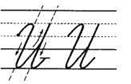 1. Ставим ручку на верхнюю линеечку рабочей строки, опускаемся по наклонной линии, поднимаемся по наклонной и, не доходя 1/3, бугорком уходим вправо вверх; коснувшись линеечки, разворачиваем ручку и опускаемся по наклонной линии, выполняем качалочку и поднимаемся по крючку до середины.