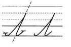 1. Ставим ручку на 1/3 сверху в рабочей строке, уходим влево вверх, задерживаемся на строке, по наклонной опускаемся вниз, задерживаемся на строке, поднимаемся по наклонной вверх, смыкаем букву.