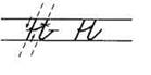 2. Бугорок, наклонная вниз, клюшка влево. Перекладина на середине высоты буквы.