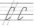 2. С середины строки вверх по наклонной, дужка, наклонная вниз, задержались на строке, поднялись до середины, плавно закрыли букву.