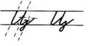 2. С 1/3 наклонная, петелька, задержались, наклонная вниз, клюшка. В средней части дополнительной строки перевёрнутая клюшка.