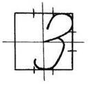 Цифры, как и буквы, имеют свой алгоритм написания. Для ознакомления с каждой из них учитель чертит на доске большую клеточку (например, 30 х 30 см) и разбивает её на четыре равные части, поделив при этом все стороны, кроме левой, на три равные части.