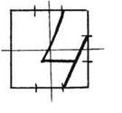 Ставим ручку на 1/3 влево от верхнего правого угла, опускаемся через центр клеточки до 1/3 снизу, уходим острым углом вправо, чуть-чуть не доводя до правой стороны клеточки. Ставим ручку на 1/3 вниз от верхнего правого угла, опускаемся по наклонной до 1/3 от правого нижнего угла. (Цифра 4 пишется с отрывом.)