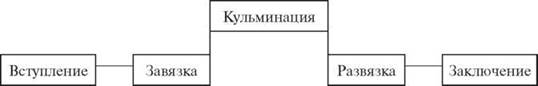 В основе рассказа лежит событие (случай, эпизод, происшествие). Поэтому в построении его различают части, связанные с развитием этого события: завязка, кульминация, развязка.