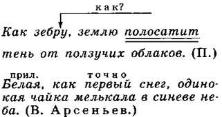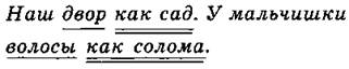 1) Люди спали перед трудным днем, как перед боем,— крепко. (В. Шукшин.) 2) Леса шумели справа и слева, бушуя, как озера. (К. Паустовский.) 3) Сосна, как дерево смолистое, с трудом поддается гниению. (С. Аксаков.) 4) Дождь мелкий, как изморось, продолжал бесшумно ложиться на тайгу. (А. Фадеев.) 5) Слева по- прежнему шла черная гряда сопок, изогнувшись, как хребет гигантского зверя. (А. Фадеев.) 6) Словом, как листом, стелет, а делом, как иголками, колет. (Пословица.) 7) Зимой тротуар как каток. 8) Избушка эта, как говорили, построена геологами. 9) Он пролетел как стрела всё расстояние. 10) Его знали как опытного врача. Как опытный врач, он сразу определил причину болезни. 11) В поле работали как взрослые, так и дети. 12) Как историк-искусствовед, отец знал настоящую цену этой находки. 13) Его знали как опытного ихтиолога. 14) Тютчев близок и дорог нам своей влюбленностью в красоту родной природы, близок как поэт-философ. 15) Наступило утро, ясное, но, как это бывает осенью, прохладное. 16) Небо в январе как звездный шатер.